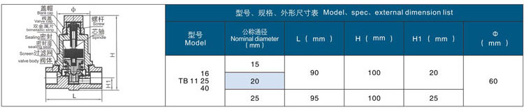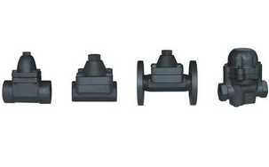 是由雙金屬片感溫元件帶動閥心進行開關閥門。當裝置剛起動時,管道出現(xiàn)低溫冷凝水,雙金屬片是平展的,閥芯在彈簧的彈力下處于開啟位置。當冷凝水溫度漸漸升高,雙金屬片感溫元件開始彎曲變形,并把閥心推向關閉位置。在冷凝水達到飽和溫度之前,疏水閥完全關閉。閥前始終存有高溫凝結(jié)水,無蒸汽泄漏,節(jié)能效果。