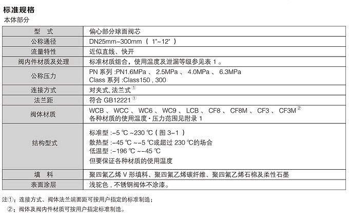 氣動偏心旋轉(zhuǎn)閥標準規(guī)格: