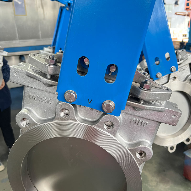 a) 刀閘閥采用整體式結(jié)構(gòu),超薄閥體,全通徑流量,最大程度避免了介質(zhì)外漏,流量損失,并且便于安裝使用。