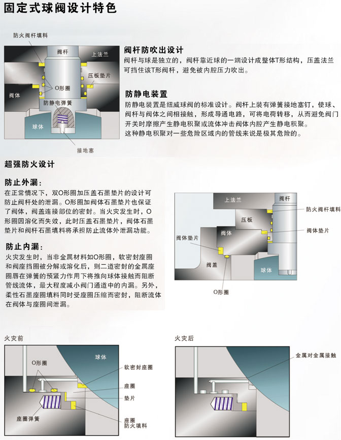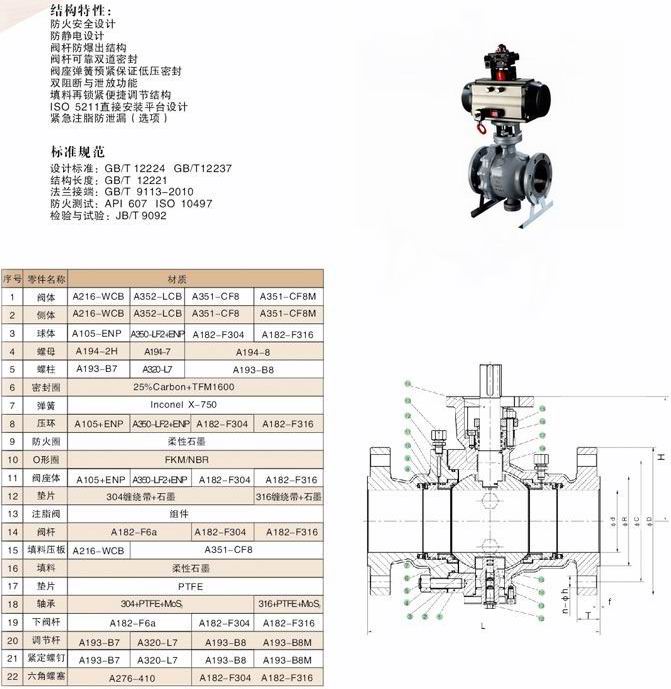 氣動固定式球閥,氣動固定式法蘭球閥:兩片式和三片式固定球閥又稱測裝分體式球閥,將閥體沿與閥門通道軸線相垂直的截面分為不對稱的左右兩半,它在管道上主要用于切斷、分配和改變介質(zhì)流動方向。它的樞軸結(jié)構(gòu)準(zhǔn)確的球體位置。標(biāo)準(zhǔn)閥座采用彈簧結(jié)構(gòu),將閥蓋推向球體,好的低壓密封性能。該球閥閥前、閥后閥座都能密封, 即所謂雙向密封特性,利用自帶的排放閥,閥體中腔可向外排放。樞軸采用防爆出保護(hù)結(jié)構(gòu),低摩擦系數(shù)的軸承等。可靠性高,用途廣泛,價格合理等。
