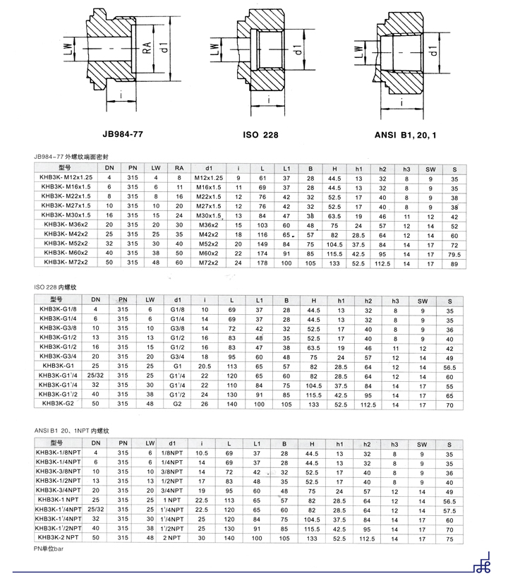高壓三通球閥,KHB3K液壓高壓三通球閥概述:主要用于液壓管路中控制油液的流通和截止,本型球閥具有流阻損失小,密封性能可靠,操作方便,外觀精美等特點。 2、本型高壓球閥主要由閥體、球體、閥桿、受柄和密封裝置組成。閥體采用銅質(zhì)鍛件,表面鍍烙,同時也提供本型不銹鋼球閥。本型高壓球閥主要有二種連接 方式:外螺紋式,內(nèi)螺紋式。 技術(shù)參數(shù):壓力:31.5MPa;適用介質(zhì):礦物油、水-乙二醇、乳化液;介質(zhì)溫度:-20-+100度