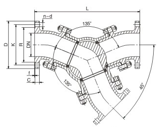 135度Y型三通球閥尺寸圖
