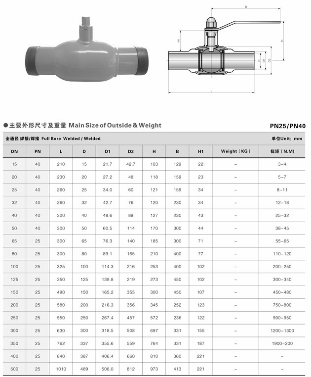 一體式全焊接球閥,Q61F一體式全焊接球閥尺寸圖: