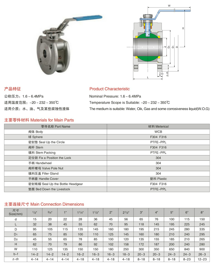 對(duì)夾式球閥,Q71F對(duì)夾球閥適用于Class150、PN1.0~2.5MPa,工作溫度 29~180℃(密封圈為聚PTFE)或 29~300℃(密封圈為對(duì)位聚苯)的各種管路上,用于截?cái)嗷蚪油ü苈分械慕橘|(zhì),選用不同的材質(zhì),可分別適用于水、蒸汽、油品、酸、醋酸、氧化性介質(zhì)、尿素等多種介質(zhì)。