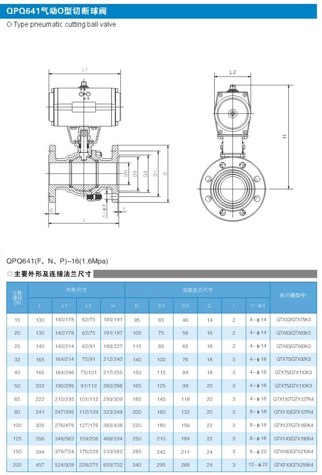 氣動(dòng)切斷球閥,氣動(dòng)O型切斷球閥尺寸結(jié)構(gòu)圖: