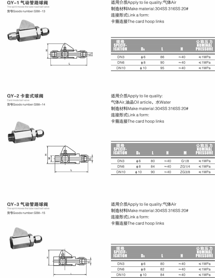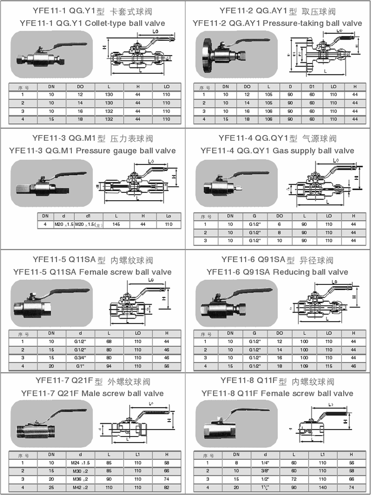 管路球閥,氣動管路球閥,測量管路球閥參數(shù)尺寸圖: