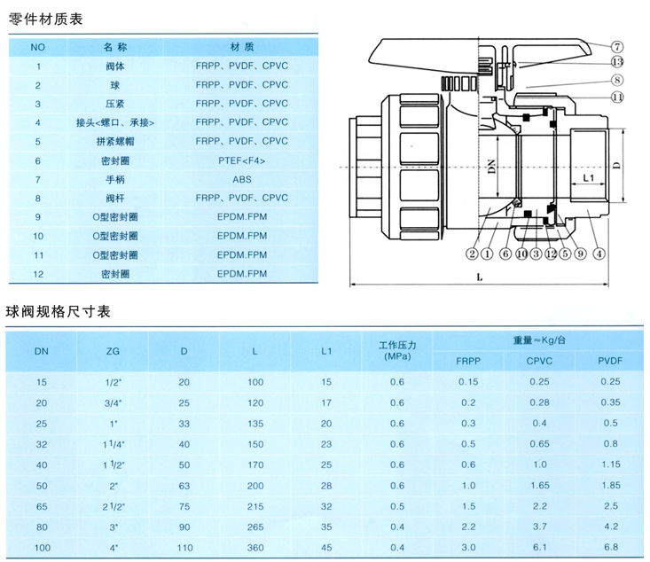 塑料球閥,耐腐蝕球閥參數(shù)尺寸圖: