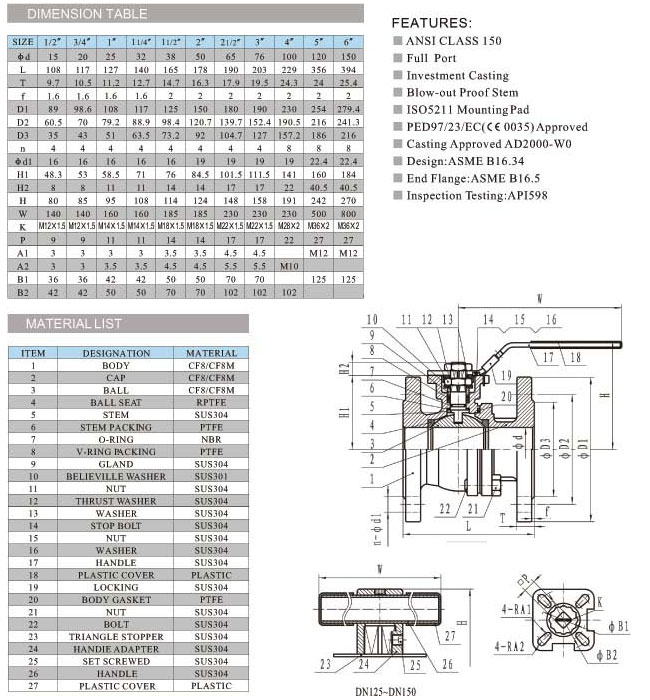 美標(biāo)不銹鋼球閥,美標(biāo)高平臺(tái)球閥ISOO 5211平臺(tái)設(shè)計(jì) 2片碟形彈簧自動(dòng)壓緊填料 閥桿防飛出,防靜電 雙層閥桿填料符合TUV TA-LUFT的閥桿泄漏測(cè)試要求。 適用介質(zhì):水、氣、油品、天然氣和酸堿類腐蝕性介質(zhì)適用溫度:≤350℃ 驅(qū)動(dòng)方式:手動(dòng)、蝸輪傳動(dòng)、氣動(dòng)、電動(dòng)、液動(dòng)等。