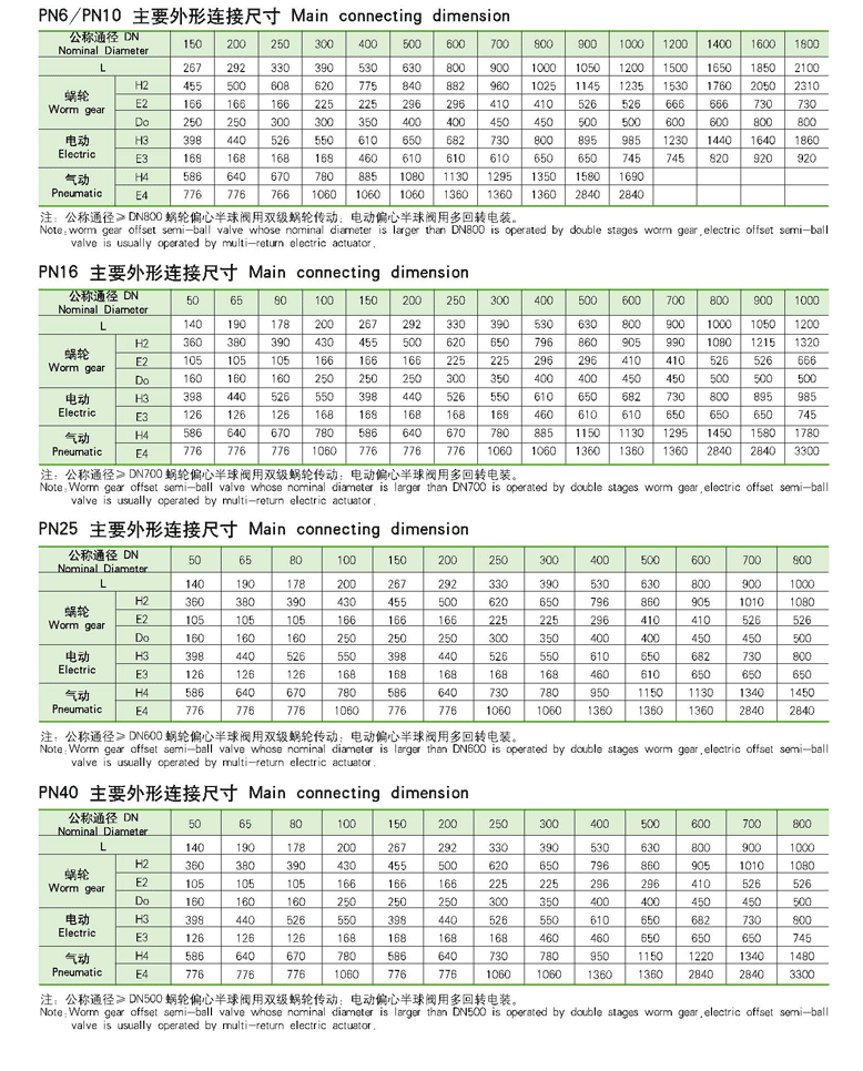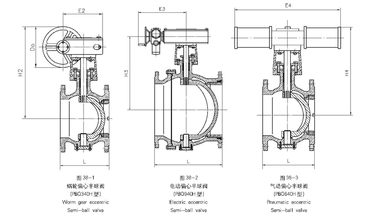 偏心半球閥,PBQ340H偏心半球閥尺寸圖: