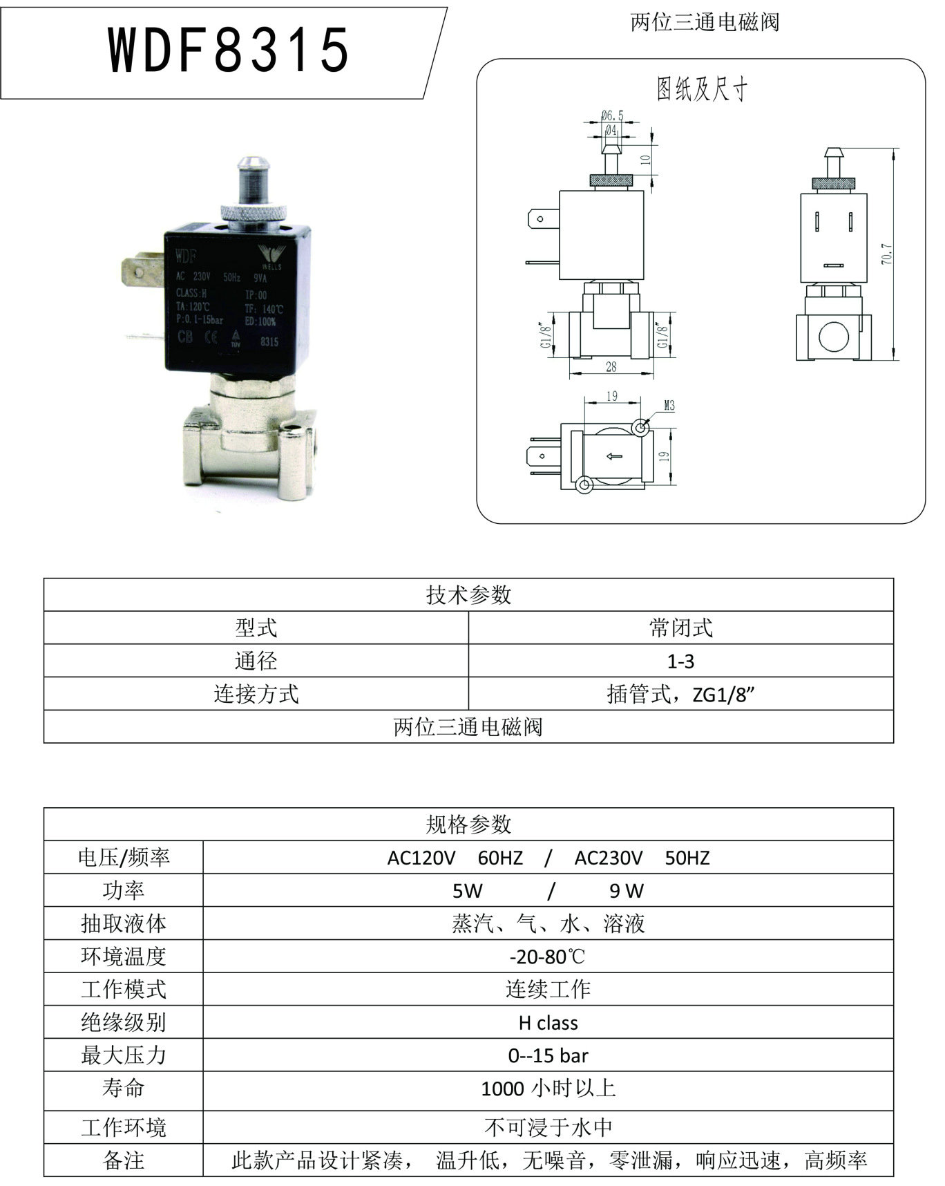 兩位三通電磁閥,二位三通電磁閥參數(shù)尺寸圖: