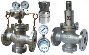 本系列減壓閥屬于先導(dǎo)活塞式減壓閥。由主閥和導(dǎo)閥兩部分組成。主閥主要由閥座、主閥盤、活塞、彈簧等零件組成。導(dǎo)閥主要由閥座、閥瓣、膜片、彈簧、調(diào)節(jié)彈簧等零件組成。通過調(diào)節(jié)調(diào)節(jié)彈簧壓力設(shè)定出口壓力、利用膜片傳感出口壓力變化,通過導(dǎo)閥啟閉驅(qū)動活塞調(diào)節(jié)主閥節(jié)流部位過流面積的大小,實(shí)現(xiàn)減壓穩(wěn)壓功能。
