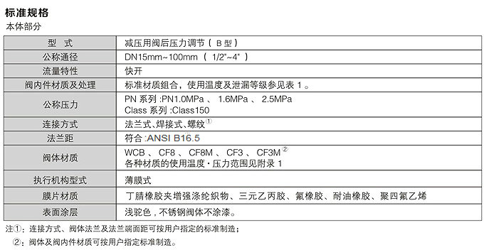 自力式調(diào)節(jié)閥標(biāo)準(zhǔn)規(guī)格