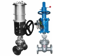 氣動閘閥,氣動帶手動閘閥實物圖片: