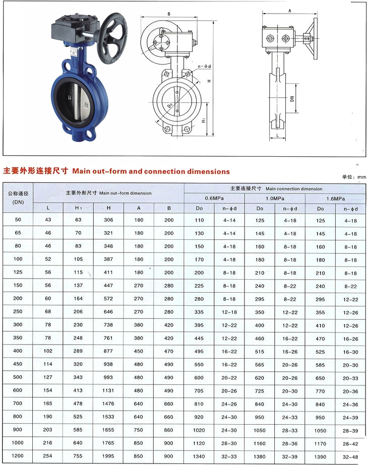 蝸輪蝶閥,法蘭式蝸輪蝶閥,對夾式蝸輪蝶閥相關(guān)尺寸圖: