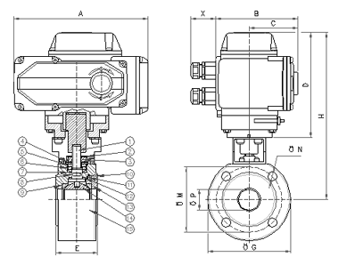 電動對夾式球閥尺寸圖: