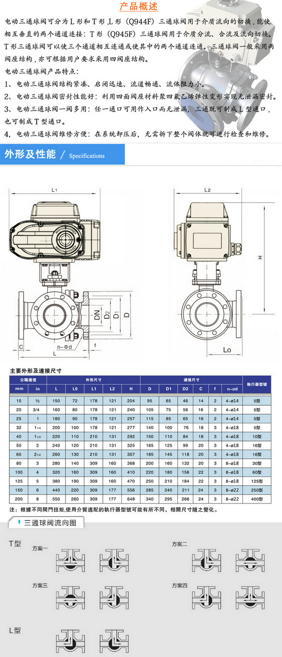 【電動三通球閥特點】: