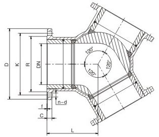 120度Y型三通球閥尺寸圖