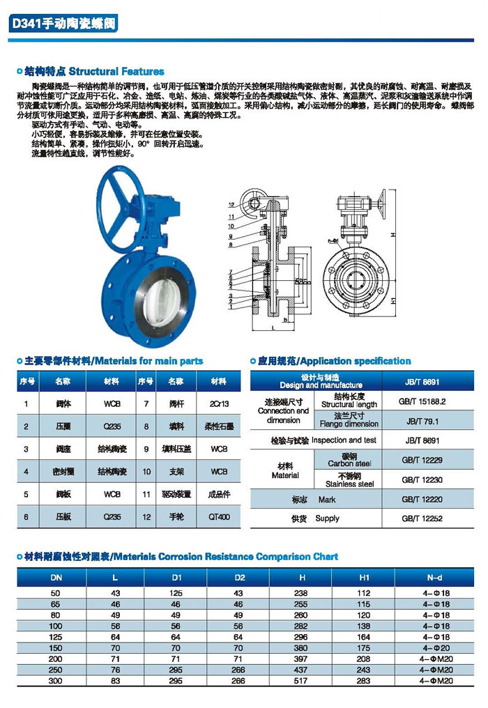 陶瓷蝶閥,D371TC陶瓷蝶閥參數(shù)尺寸圖: